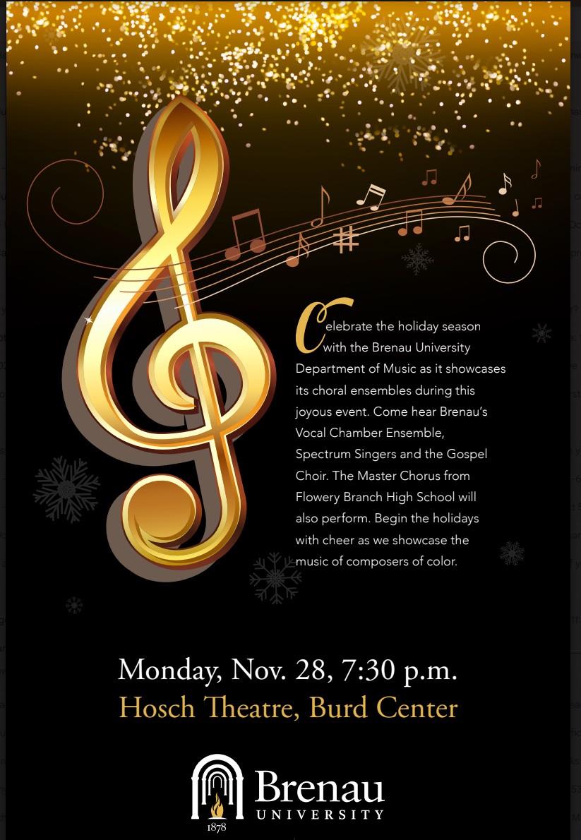 Join us for our Holiday Concert featuring the Spectrum Singers, Vocal Chamber Ensemble, Gospel Choir, and Flowery Branch High School Vocal Ensemble!