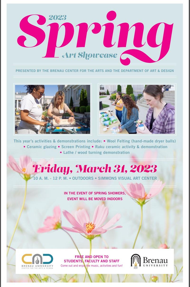 Reminder to all interested faculty, staff and students that the Art & Design department will be hosting the annual Spring Art Showcase on Friday, March 31, from 10 a.m. to noon.